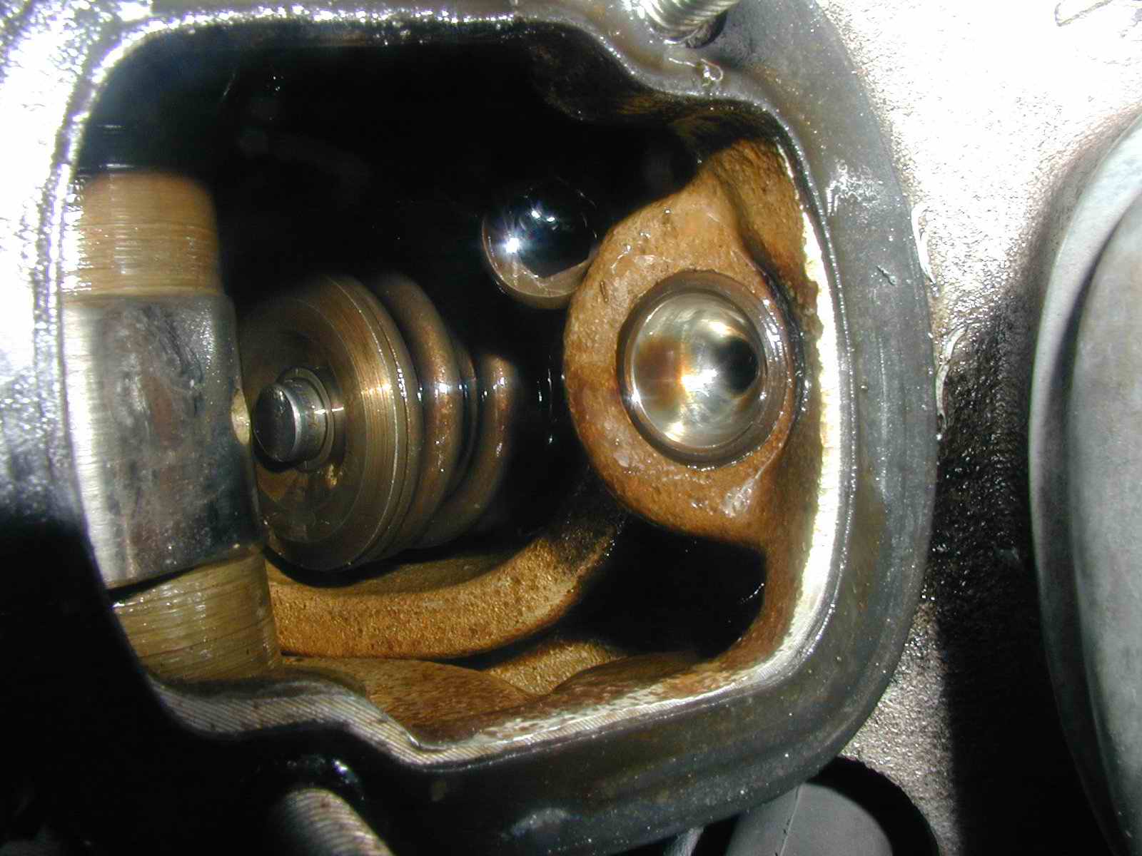 | Tak jsem serizoval ventily a po serizeni to porad nejak mlatilo. Zkoumam, zkoumam a na vahadle chybi tvrdokov. Je to vubec mozne? Navic na dvou vahadlech... A proto nemate nekdo nahodou vahadla navic? Na poslednim obrazku je videt, jak jsem je na brusce "srovnal". No jo dojet jsem musel... |